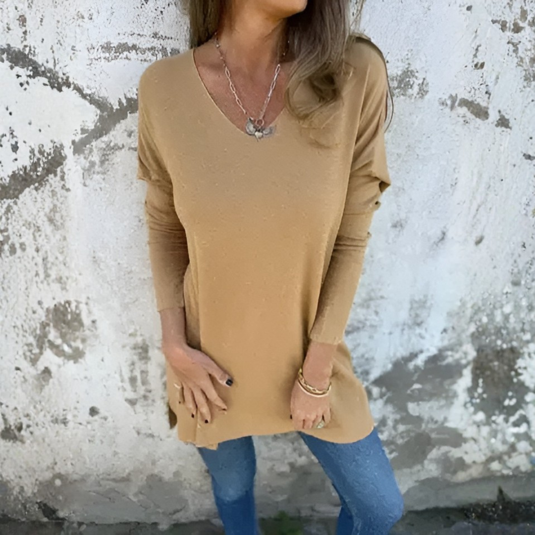 Forbliv komfortabel og stilfuld med den Bente Afslappet V-hals Strik Tunika. Designet med en løs, oversized pasform og blødt strikstof, er det den perfekte del til lagdeling eller til at bære alene. Den flatterende V-hals tilføjer et strejf af elegance, mens det lange design giver komfort og dækning—ideelt for kvinder 40+, der elsker tidløs, nem stil.